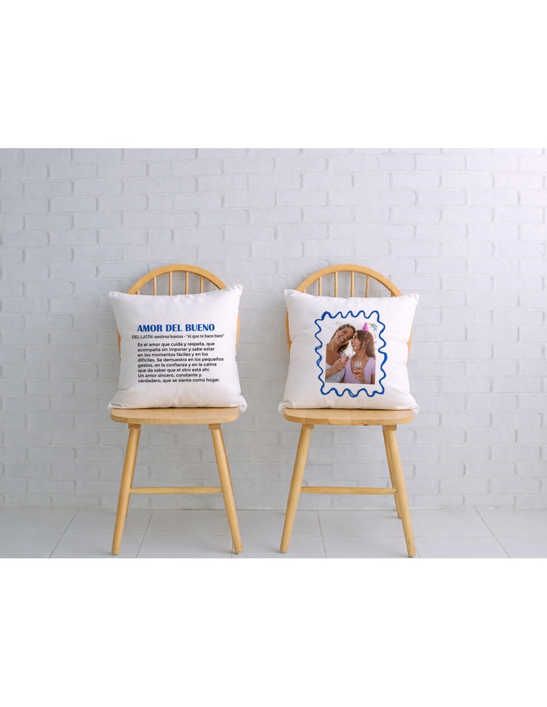 Perfecto como regalo de San Valentín, aniversario o para celebrar una relación basada en el cariño sincero y la complicidad. Un cojín que no solo decora, sino que cuenta una historia y se convierte en parte del día a día.
