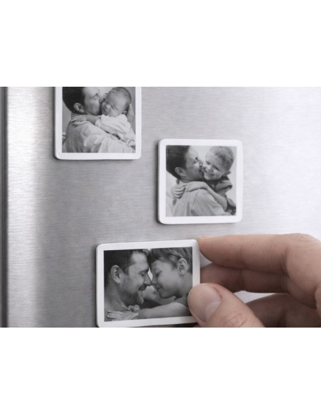 Imán de 5,5 x 5,5 cm personalizado con tu foto mediante sublimación. Un recuerdo especial para la nevera.