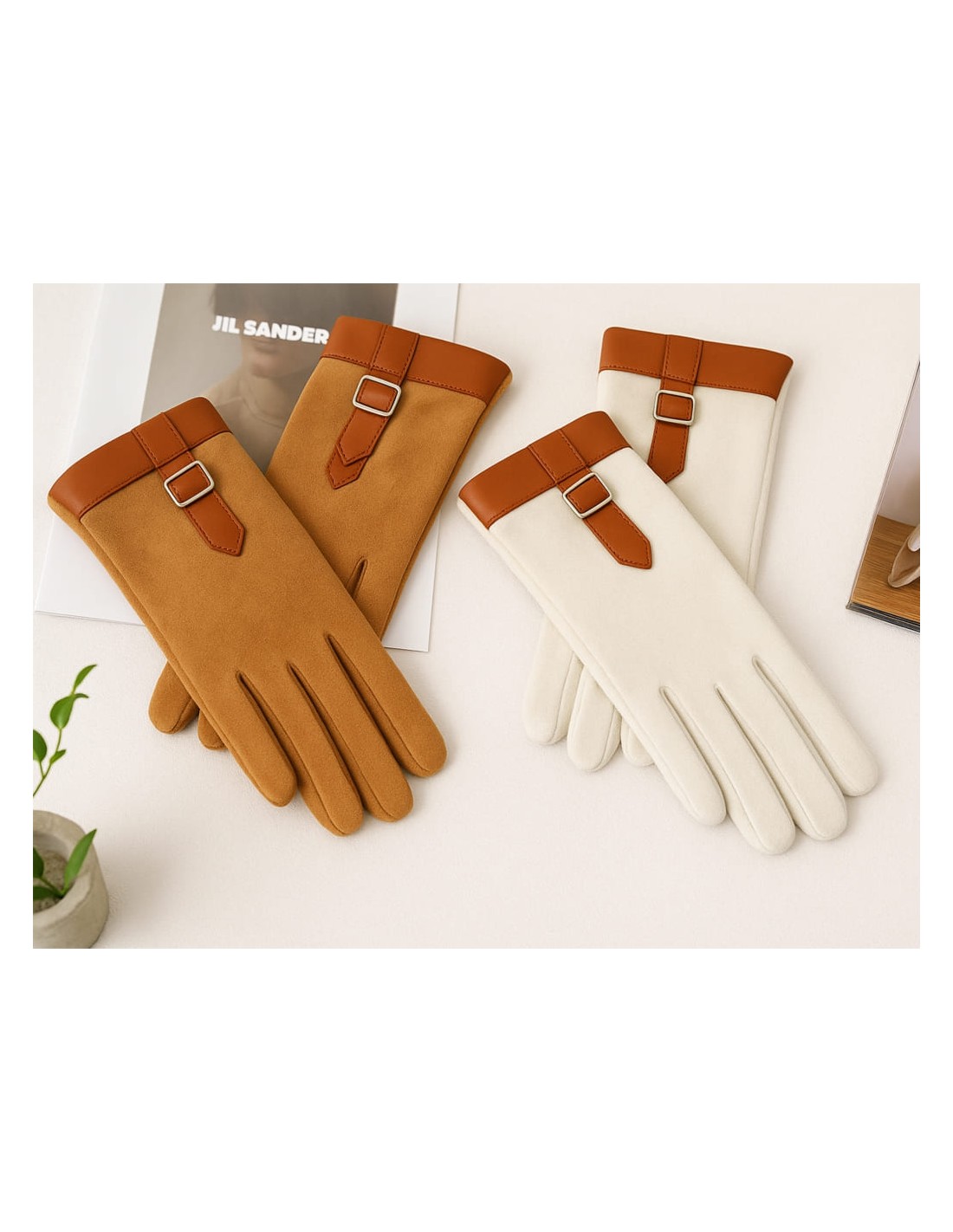 Añade un toque de distinción a tus días de invierno con estos guantes de ante elegantes, disponibles en dos colores atemporales: marrón camel y beige crema. Fabricados con un tejido suave y agradable al tacto, ofrecen una combinación perfecta de comodidad, abrigo y estilo.