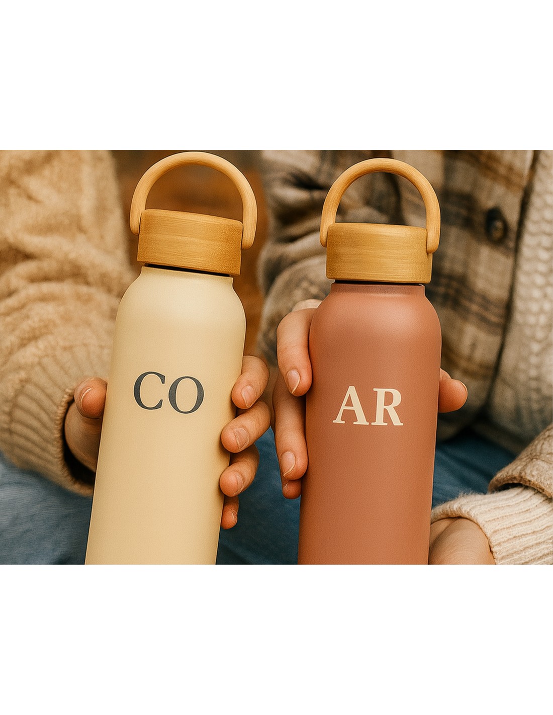 Personalízala con un grabado láser en el tapón o en el cuerpo de la botella, ya sea con tu nombre, iniciales o un mensaje especial, para hacerla única. Perfecta para llevar a cualquier lugar, esta botella combina funcionalidad y estilo, asegurando que te mantengas hidratado con un accesorio que refleja tu personalidad.