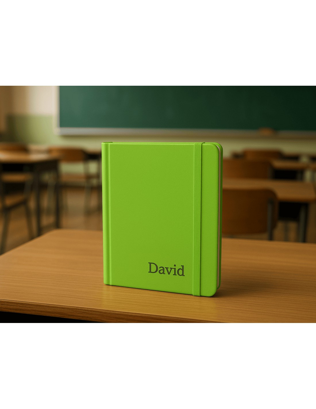 Un bloc de notas en color verde, personalizable con tu nombre o texto para hacerlo único y especial. Ideal para estudiantes, profesionales o como regalo original.