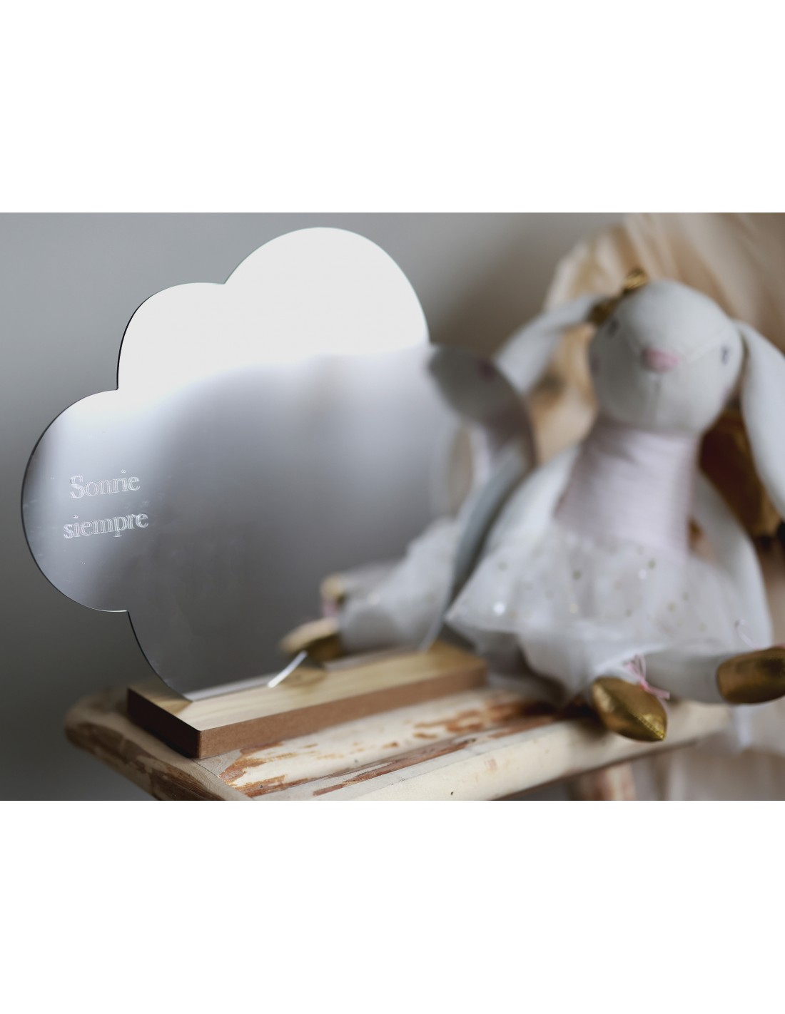Espejo con forma de nube personalizable con grabado láser. Un detalle delicado y original, ideal para decorar habitaciones infantiles o regalar con significado.