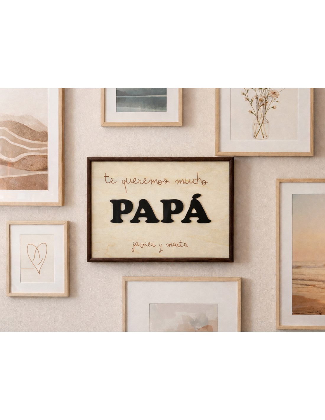 Un detalle lleno de emoción para sorprender a papá en cualquier ocasión especial. Este cuadro personalizado combina un diseño elegante y minimalista con un mensaje que llega directo al corazón: “Te queremos mucho, PAPÁ”, acompañado de los nombres que lo hacen aún más especial.